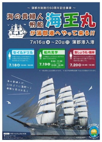 2014年7月18日(金)~20日(日)まで、帆船「海王丸」が蒲郡港へ寄港します。